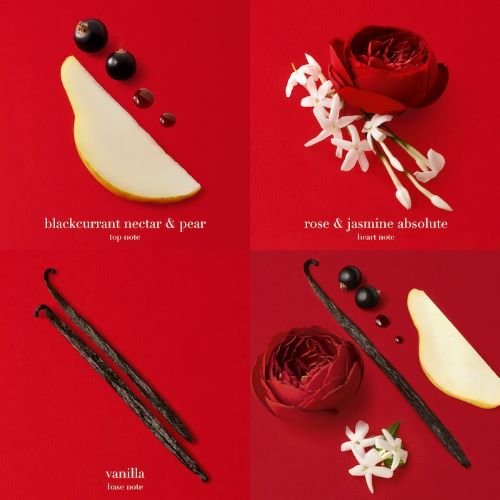 Alluring and bold yet fruity and fresh, this feminine fragrance strikes the perfect balance between sexy and sophisticated. After opening with a burst of sparkling pear, the seductive scent reveals a deep rose-petal heart and a smoldering woody-vanilla base.