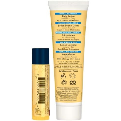 Infused with butters, oils and responsibly sourced beeswax, the moisturizing lip balm softens lips with a sweet, comforting vanilla flavor. The lip balm glides on smoothly, leaving behind a tint-free, matte finish and soft, supple lips that everyone will be buzzing about. Burt’s Bees moisturizing body lotion combines luxurious milk and honey with coconut and grapeseed oils to quickly absorb and nourish normal to dry skin for up to 24 hours. Formulated without parabens, phthalates, petrolatum or SLS, the natural origin lip balm and body lotion revitalize and beautify lips and skin with clean ingredients