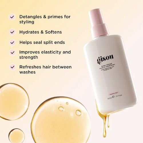 – Gisou Honey lightly hydrates and enhances shine and softness for healthy looking hair, while moisturizing to seal split ends and improve elasticity and strength