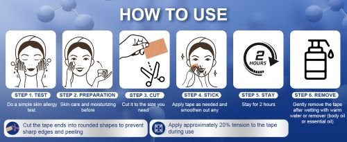 - Safe and Comfortable Design: Crafted from latex-free materials, our face tapes adhere gently and comfortably to the skin, boasting exceptional waterproof properties. Users can customize sizes to minimize waste, with each roll reusable over 100 times.