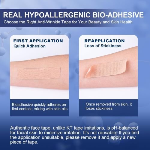 - All-Day Care: Our anti aging face tapes have undergone rigorous clinical testing to ensure both efficacy and safety Hypoallergenic and 100% waterproof, our anti wrinkle tape withstands swimming, extended showers, and vigorous activities, ensuring prolonged adhesion while remaining gentle upon removal.